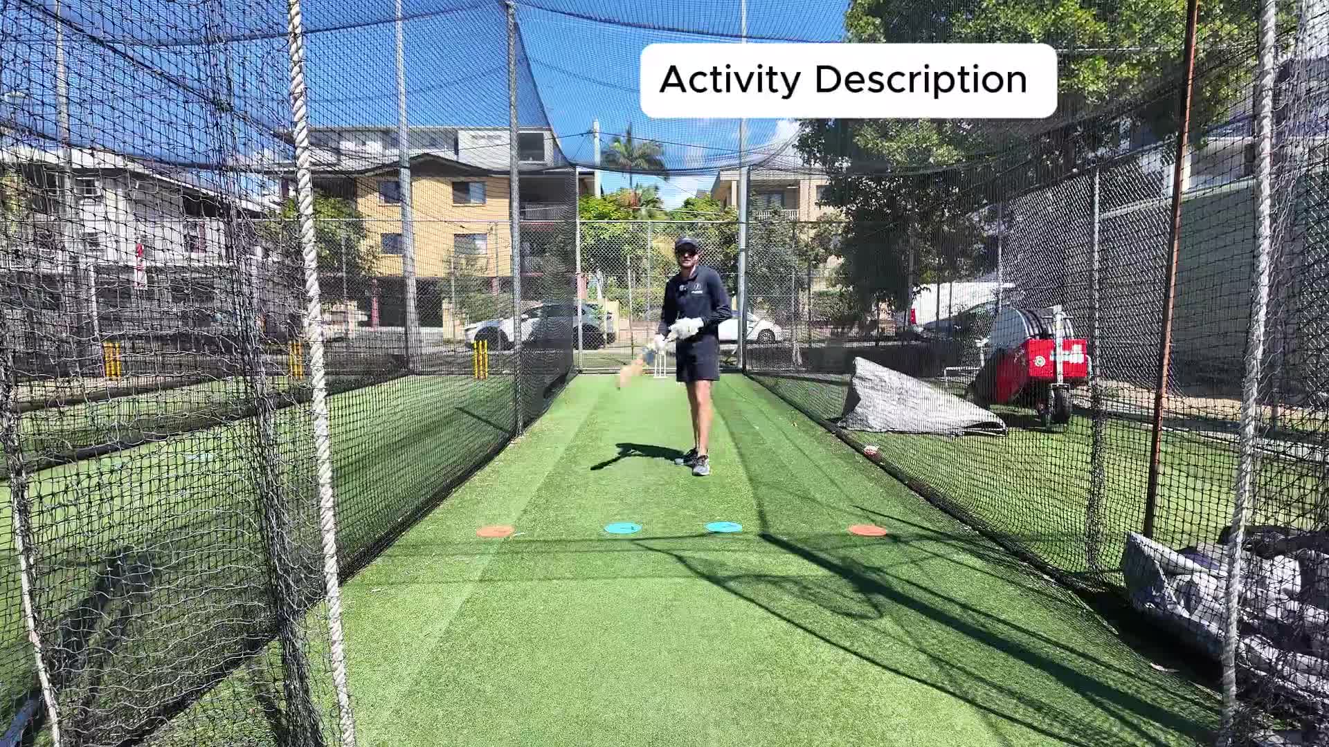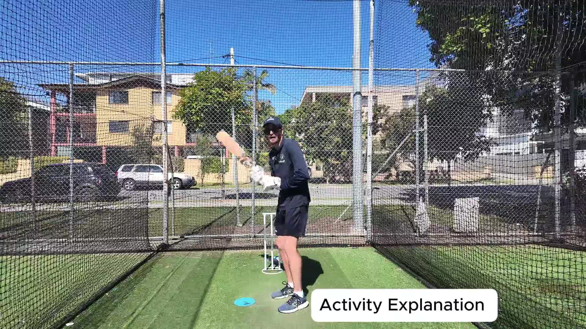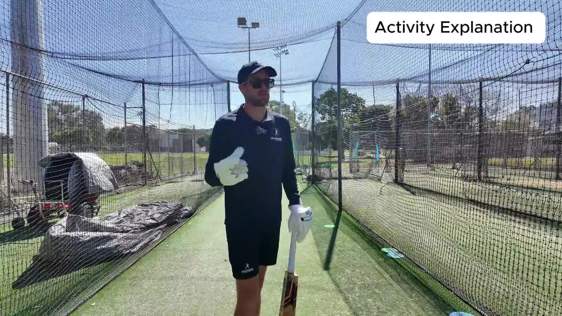 In this activity, the batter will work on covering the off stump when facing sidearm throws.